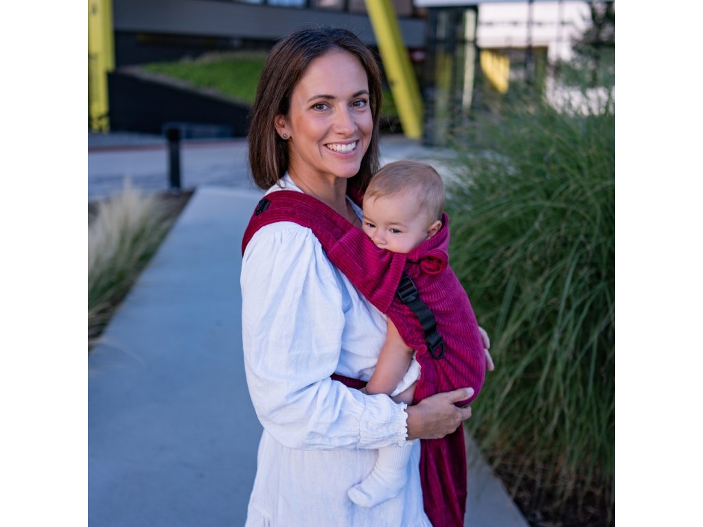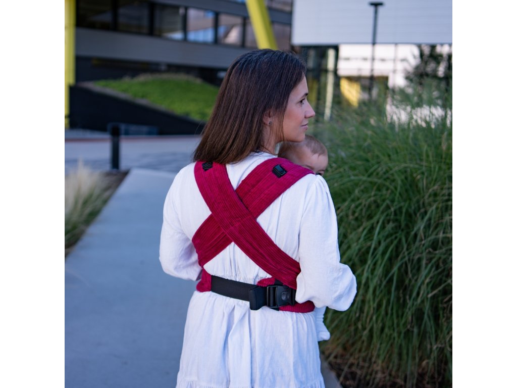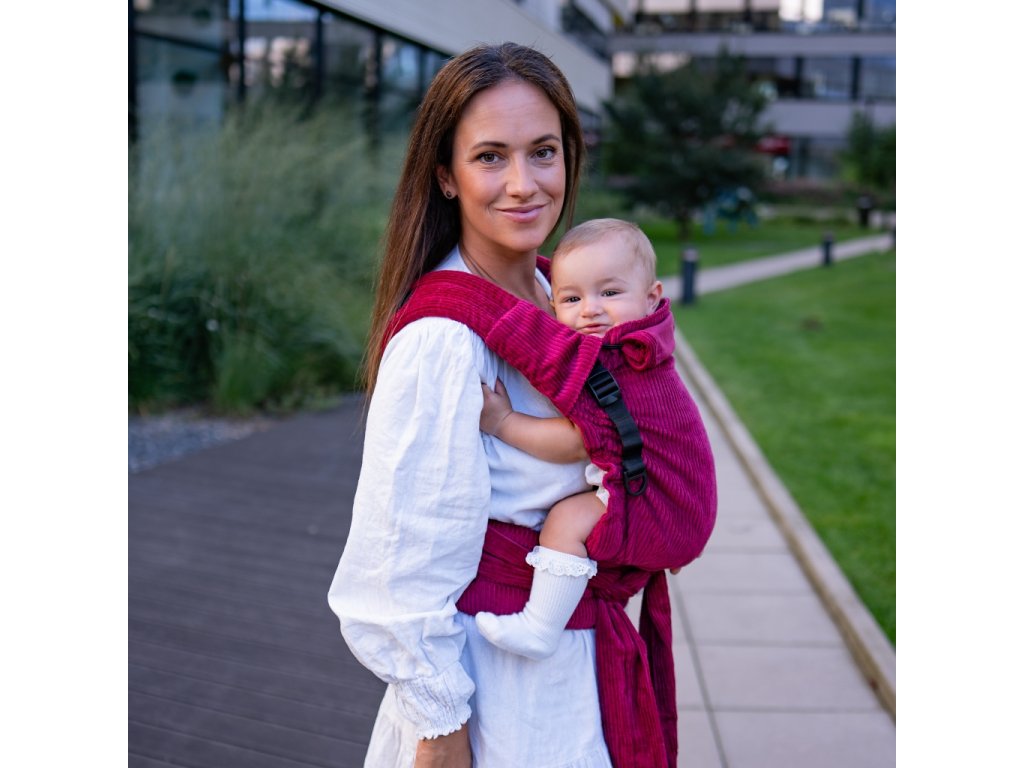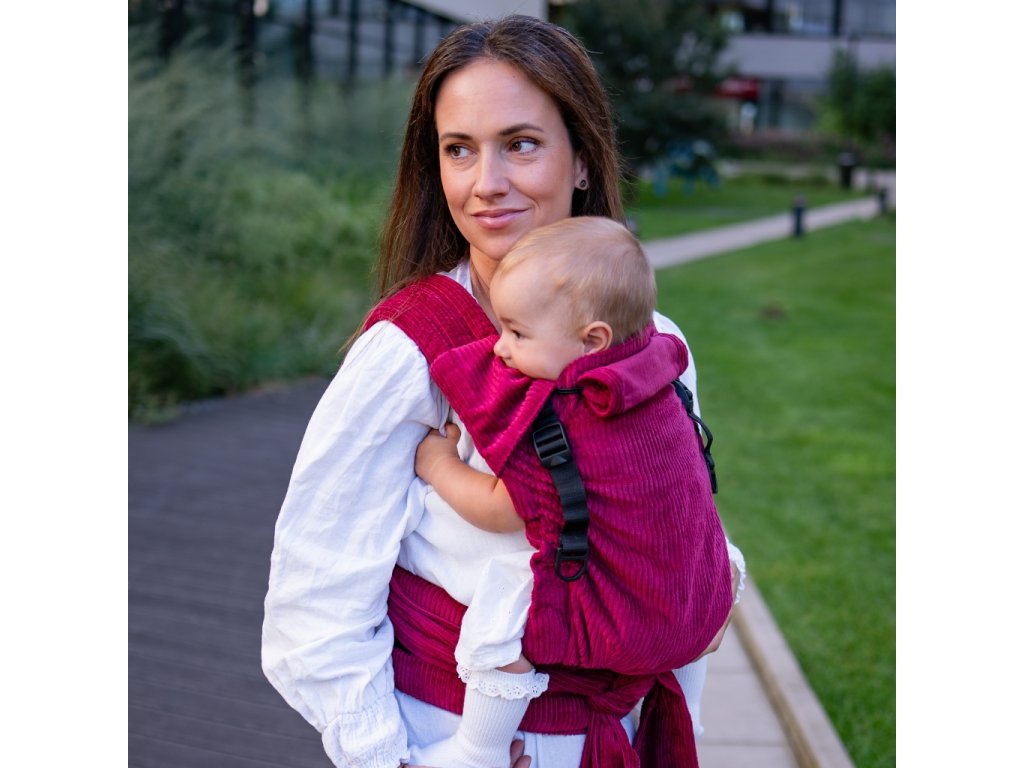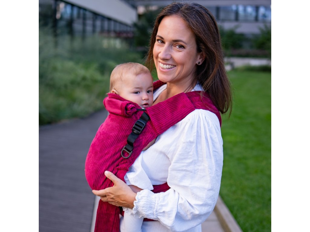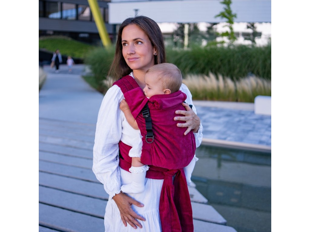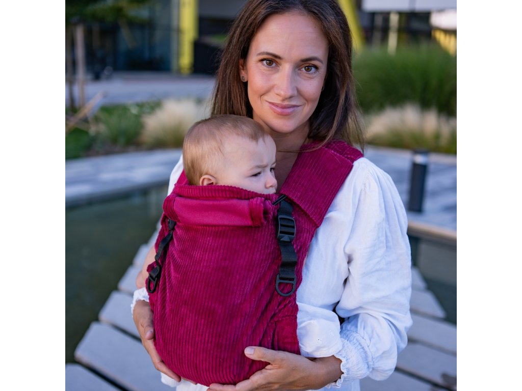 Novorozenecké, rostoucí nosítko Moisha HuGo Manšestr Burgund pro děti od narození (cca 47 cm a 2,5 - 3,0 kg) do výšky dítěte cca 80 cm a max. 15 kg.