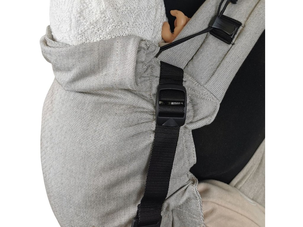 Nosítko má stahovací kapucku, které bezpečně fixuje hlavičku miminka, když právě usne.