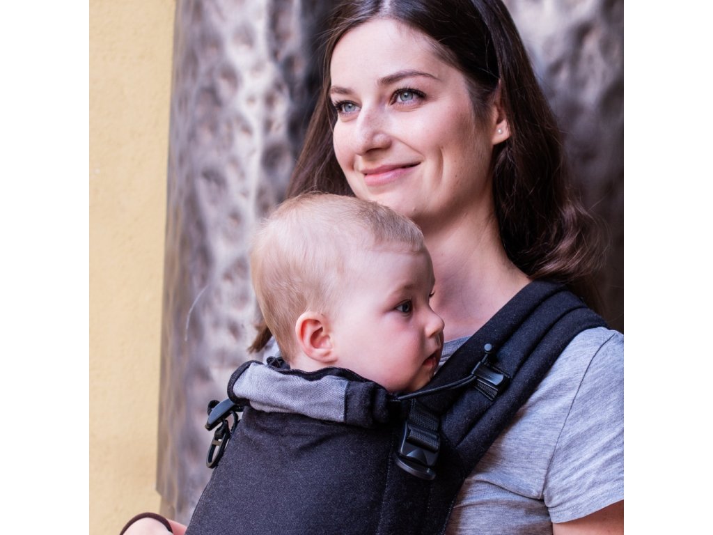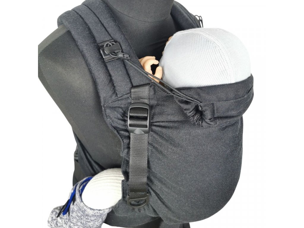 Nosítko má stahovací kapucku, které bezpečně fixuje hlavičku miminka, když právě usne.