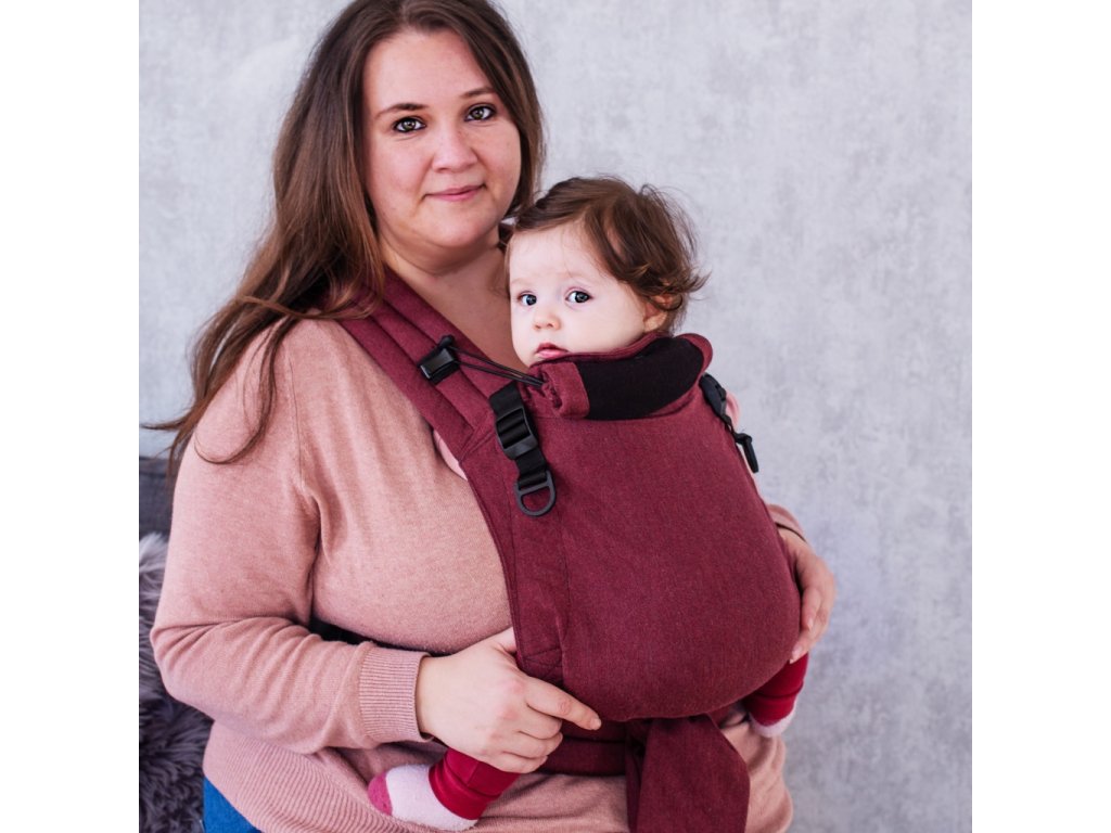 Nosítko má stahovací kapucku, které bezpečně fixuje hlavičku miminka, když právě usne.
