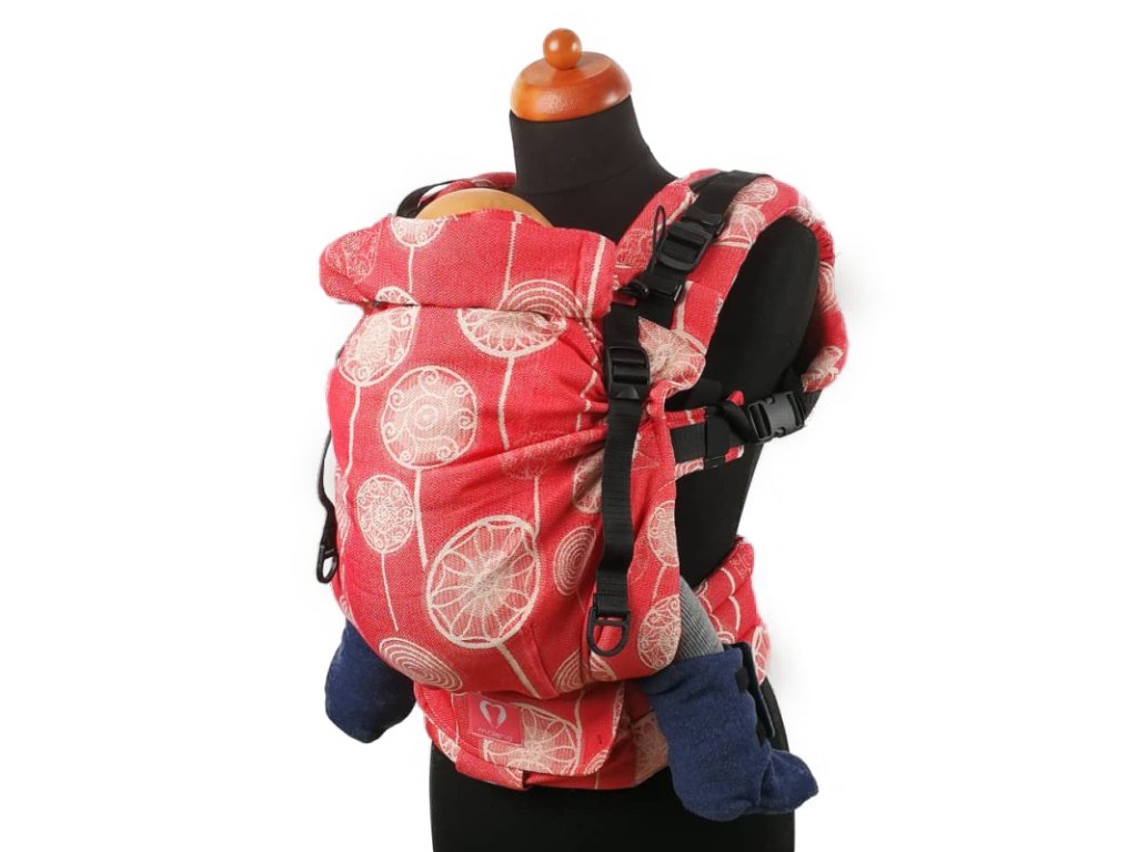 Ergonomické a rostoucí nosítko Moisha Grow Dandelions Red pro děti od cca 2 měsíců cca 58 cm do výšky dítěte cca 98 cm a max. 20 kg.