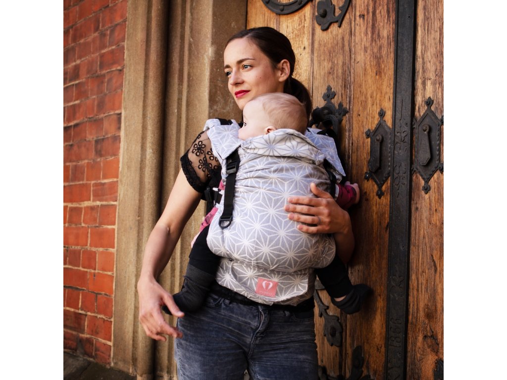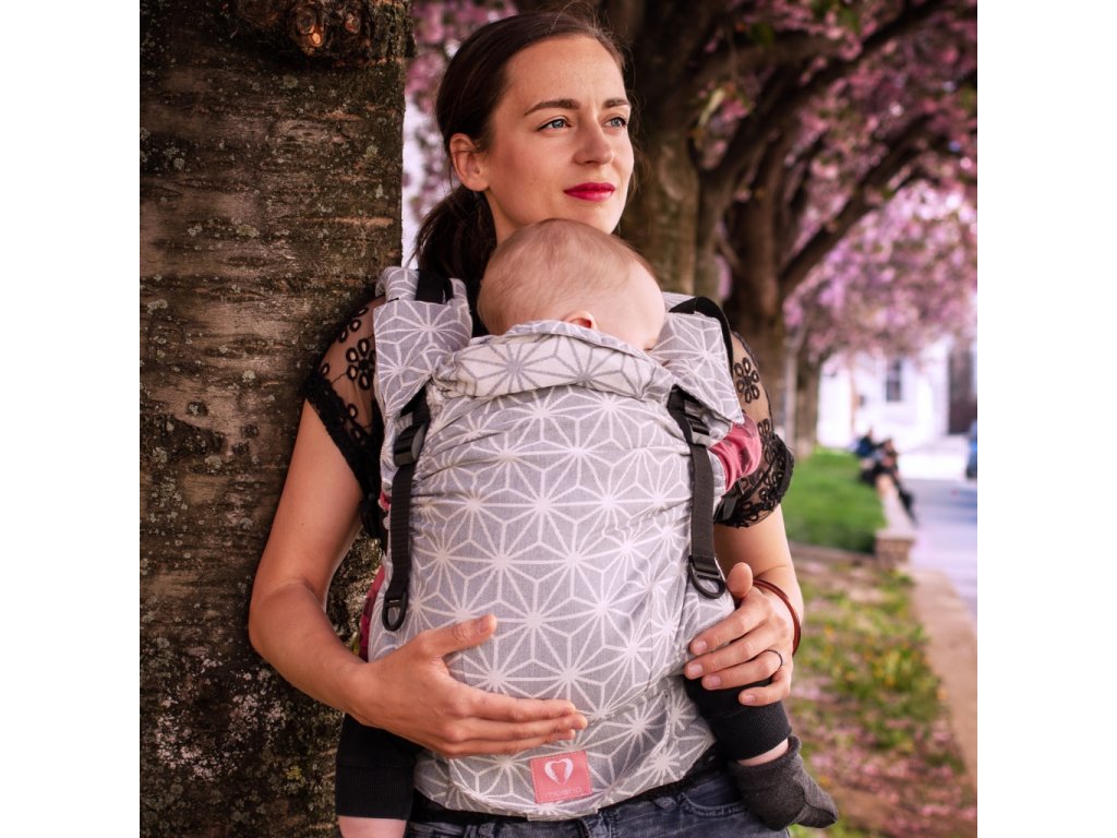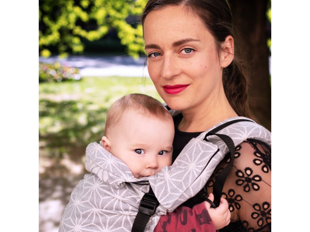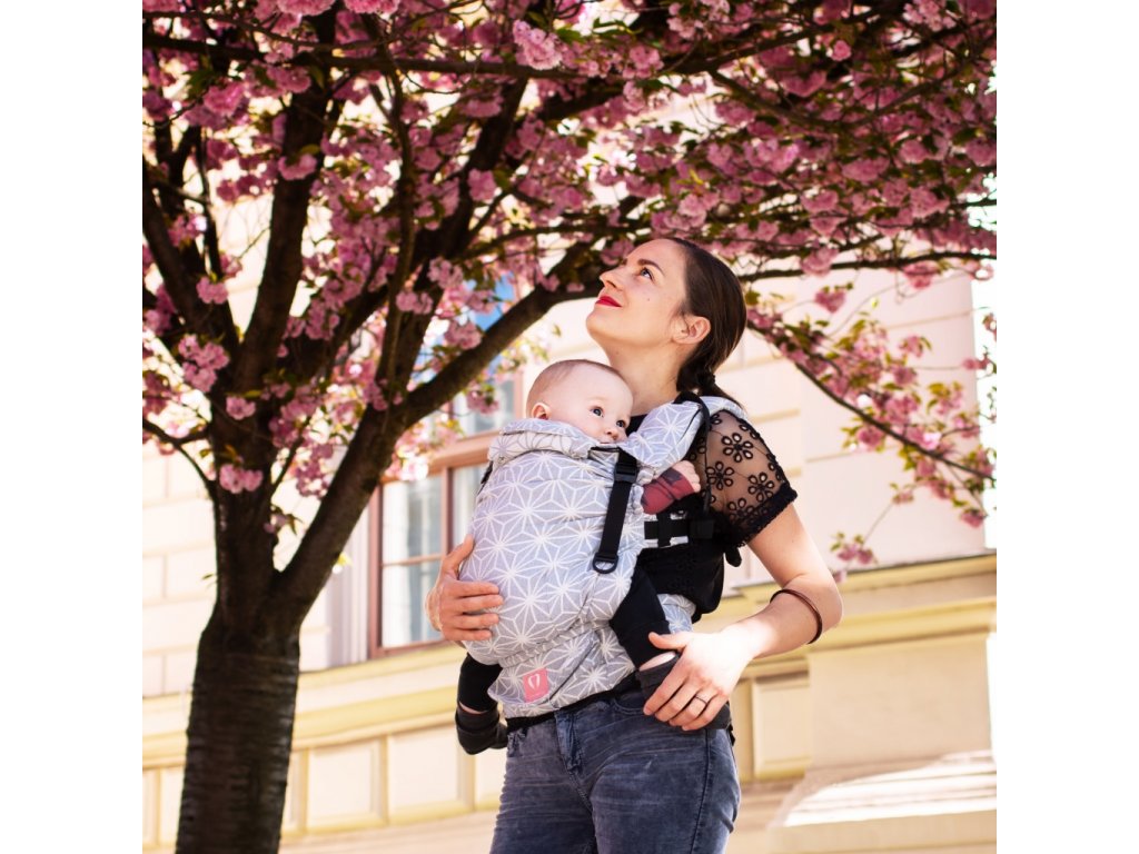 Ergonomické a rostoucí nosítko Moisha Grow Geostar Steel pro děti od cca 2 měsíců cca 58 cm do výšky dítěte cca 98 cm a max. 20 kg.