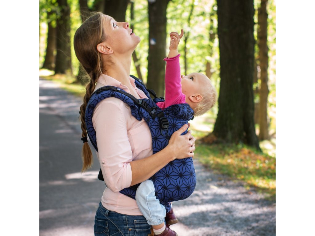 Ergonomické a rostoucí nosítko Moisha Grow Geostar Zaffre pro děti od cca 2 měsíců cca 58 cm do výšky dítěte cca 98 cm a max. 20 kg.