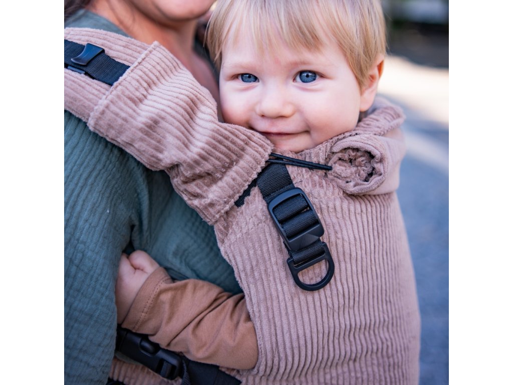 Ergonomické a rostoucí nosítko Moisha Grow Manšestr Camel pro děti od cca 2 měsíců cca 58 cm do výšky dítěte cca 98 cm a max. 20 kg.