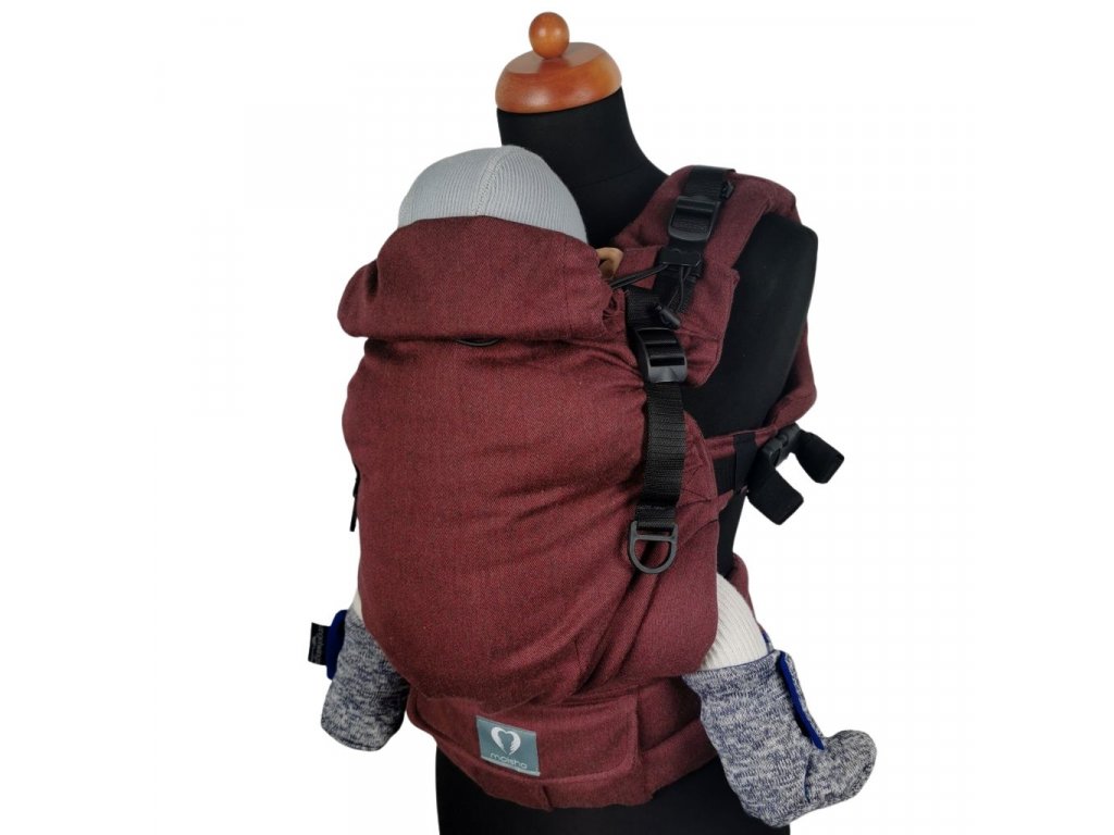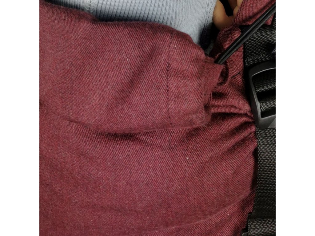 Nosítko má stahovací kapucku, které bezpečně fixuje hlavičku miminka.